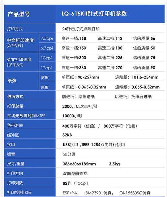 愛(ài)普生(EPSON) 發(fā)票打印機(jī) 1+3聯(lián)82列針式打印機(jī) LQ-615KII